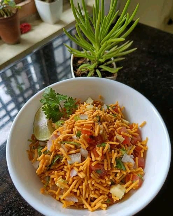 This savory masterpiece combines crispy bhujiya, tangy chutneys, fresh veggies, and an irresistible mix of spices, creating a harmony of crunch, zest, and spice in every bite. Whether you're hosting a party, indulging in a midnight snack, or simply looking for a quick pick-me-up, Bhujiya Chaat is the ideal choice.